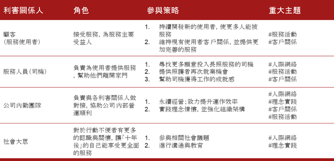社會企業與非營利組織合作建立與社會企業及非營利組織的合作關係,共同推動交通平權的相關計劃,並提高社會對無障礙交通的關注與支持。